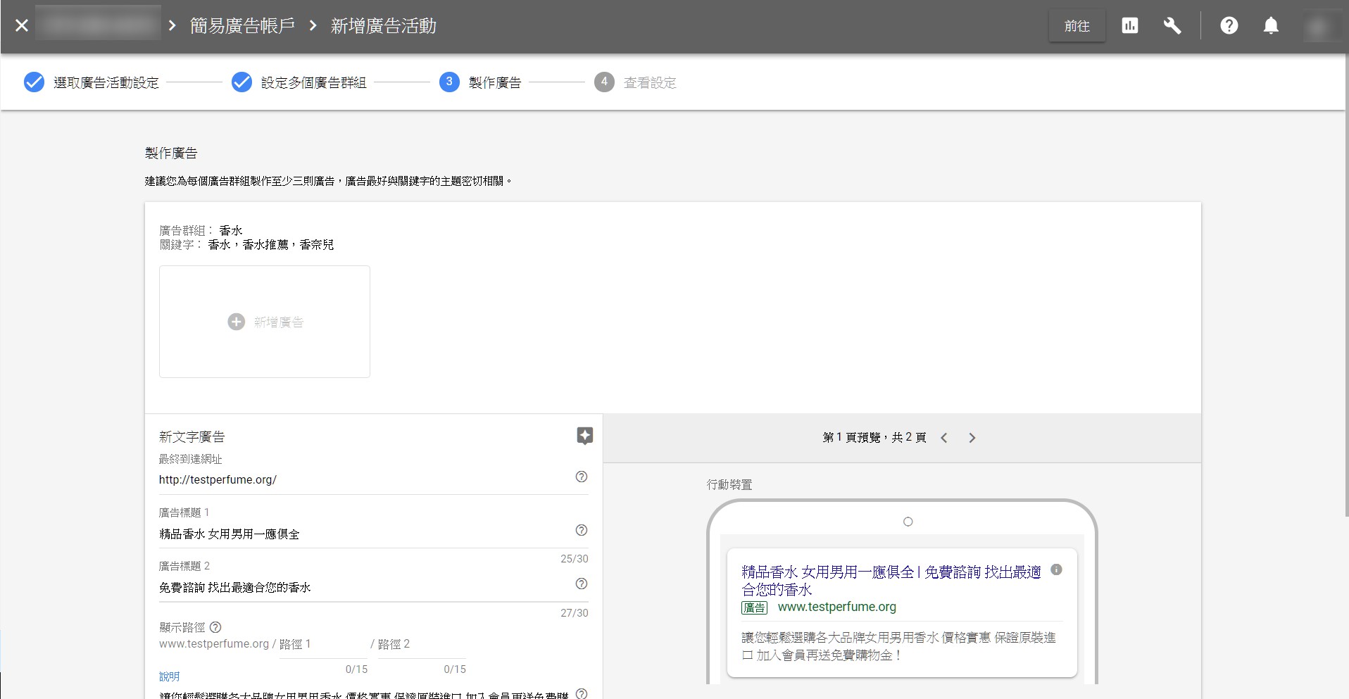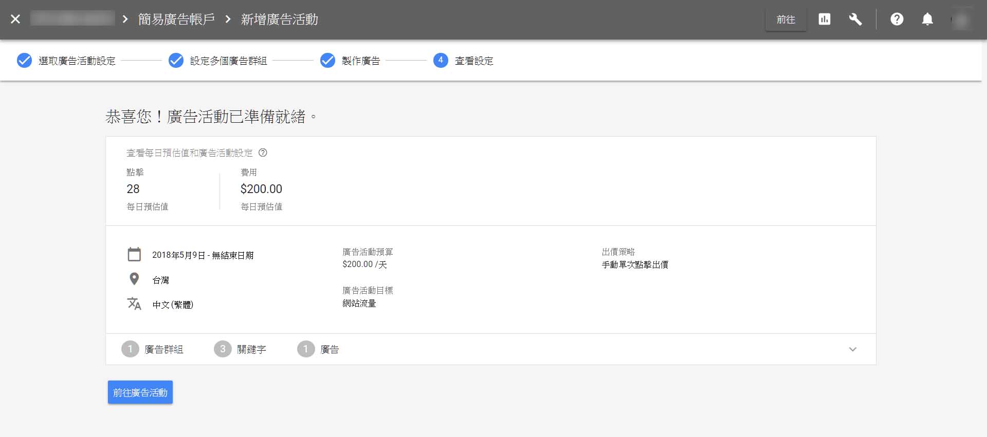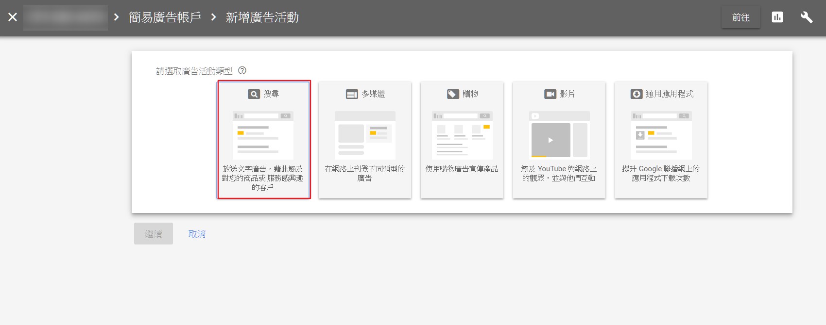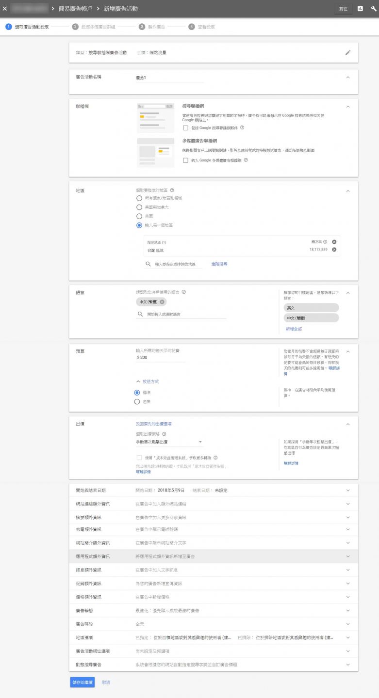 再來讓筆者循序漸進地帶您設置一個簡易的廣告帳戶。