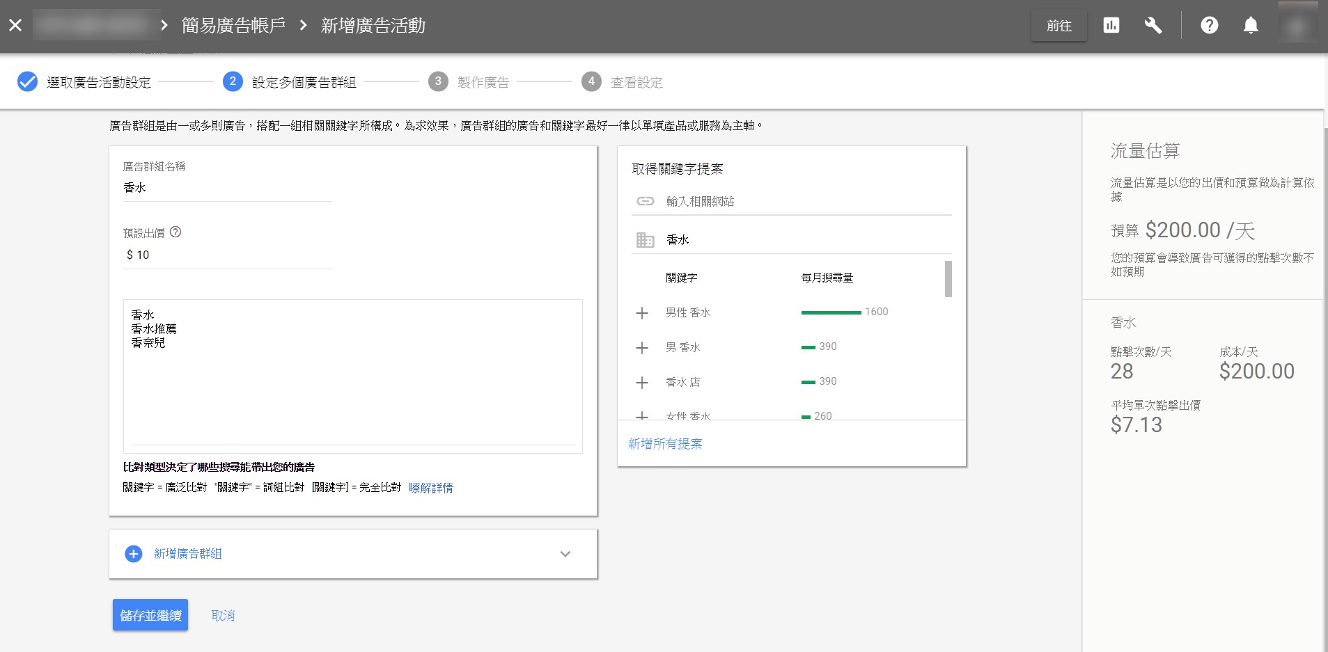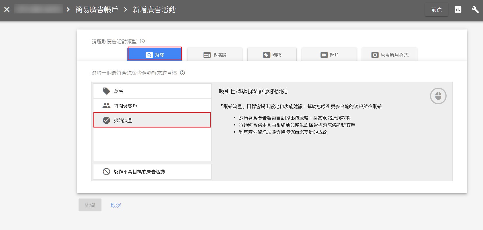 這次我們先用關鍵字廣告作範例、以網站流量做導向。